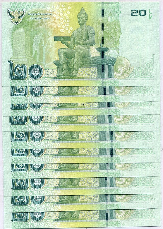 Thailand 20 Baht ND 2013 - 2016 P 118 Random Signature UNC LOT 10 PCS is backordered and will ship as soon as it is back in stock.