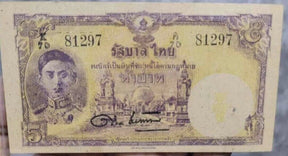 THAILAND 5 BAHT ND 1945 black serial number P 55A very rare AUnc