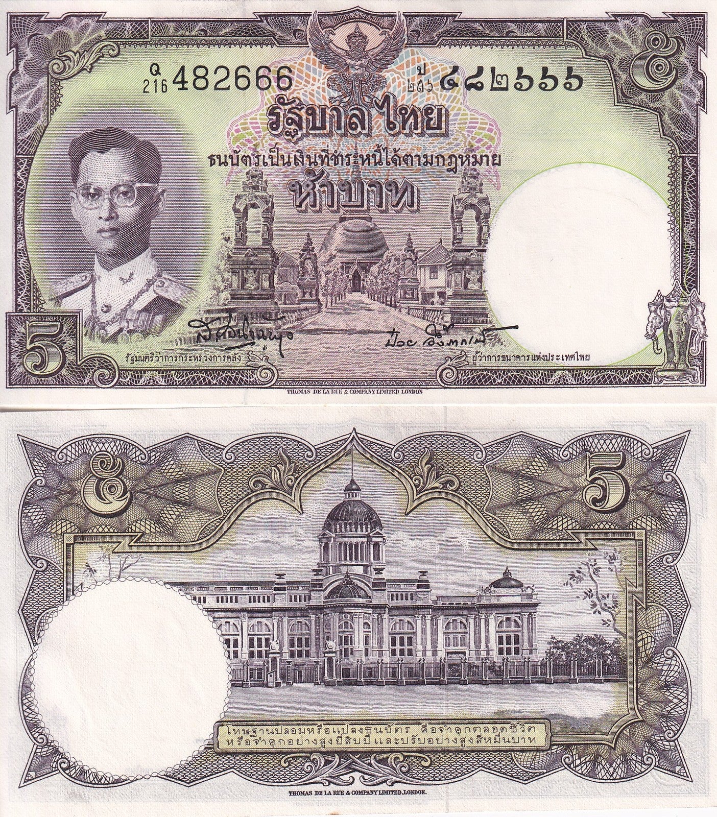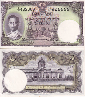 Thailand 5 Baht ND 1956 P 75 AUnc Little Yellow Tone