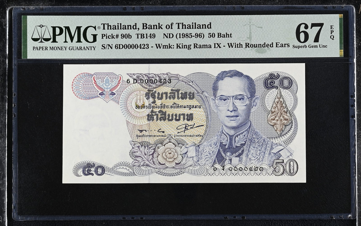 Thailand 50 Baht ND 1985-1996 P 90 b LOW 3 Digit Superb Gem UNC PMG 67 EPQ