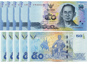 Thailand 50 Baht ND 2015 P 119 RANDOM SIGN UNC LOT 5 PCS