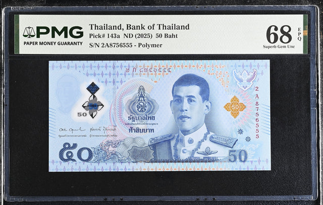 Thailand 50 Baht ND 2025 P 143 a Polymer Superb Gem UNC PMG 68 EPQ TOP POP