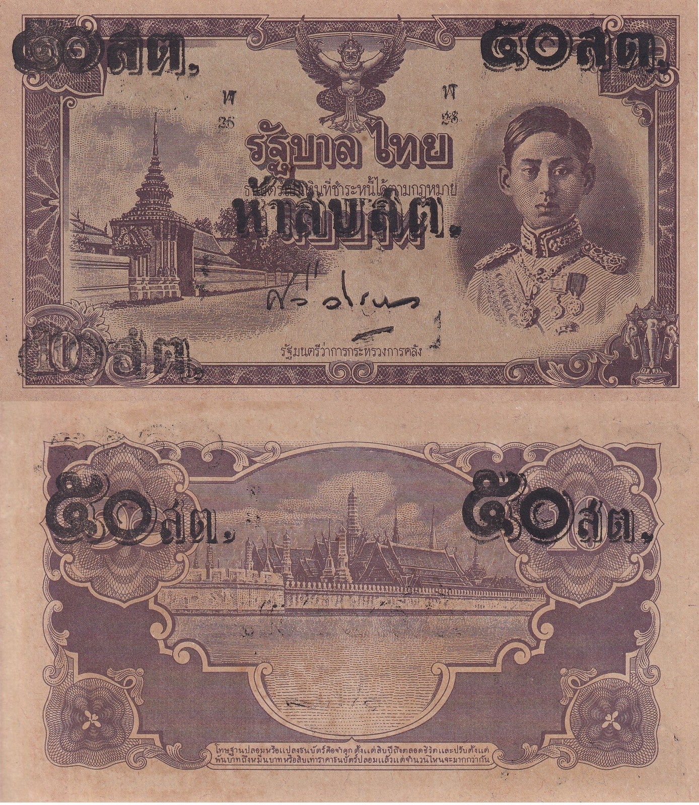 Thailand 50 Satang on 10 Baht ND 1946 P 62 AU-UNC Little Tone