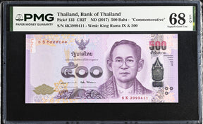 Thailand 500 Baht ND 2017 P 133 Commemorative Superb Gem UNC PMG 68 EPQ