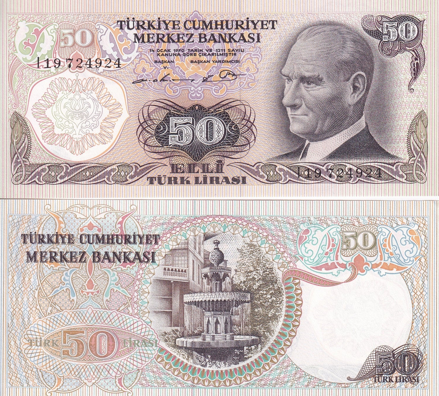 Turkey 50 Lira 1970 P 188 UNC