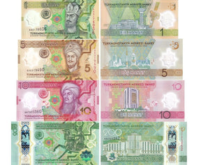 Turkmenistan Set 4 UNC 1 5 10 200 Manat 2025 / 2026 POLYMER Peace & Trust P new