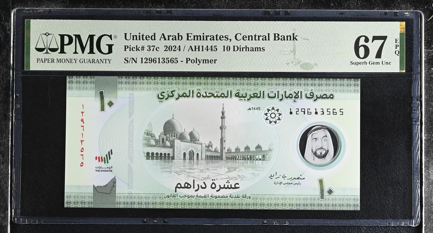 UAE United Arab Emirates 10 Dirhams 2024 P 37 c Superb Gem UNC PMG 67 EPQ