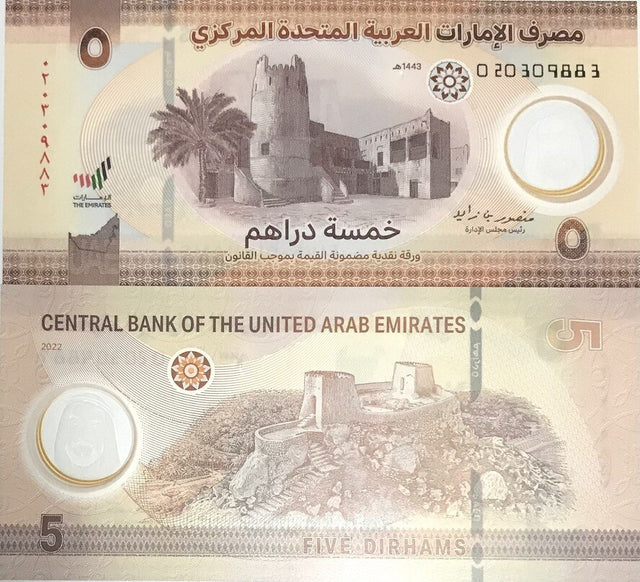 UAE United Arab Emirates 5 Dirhams 2022 P 36 Polymer UNC