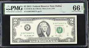 United States 2 Dollars USA 2013 P 538 K Dallas Gem UNC PMG 66 EPQ