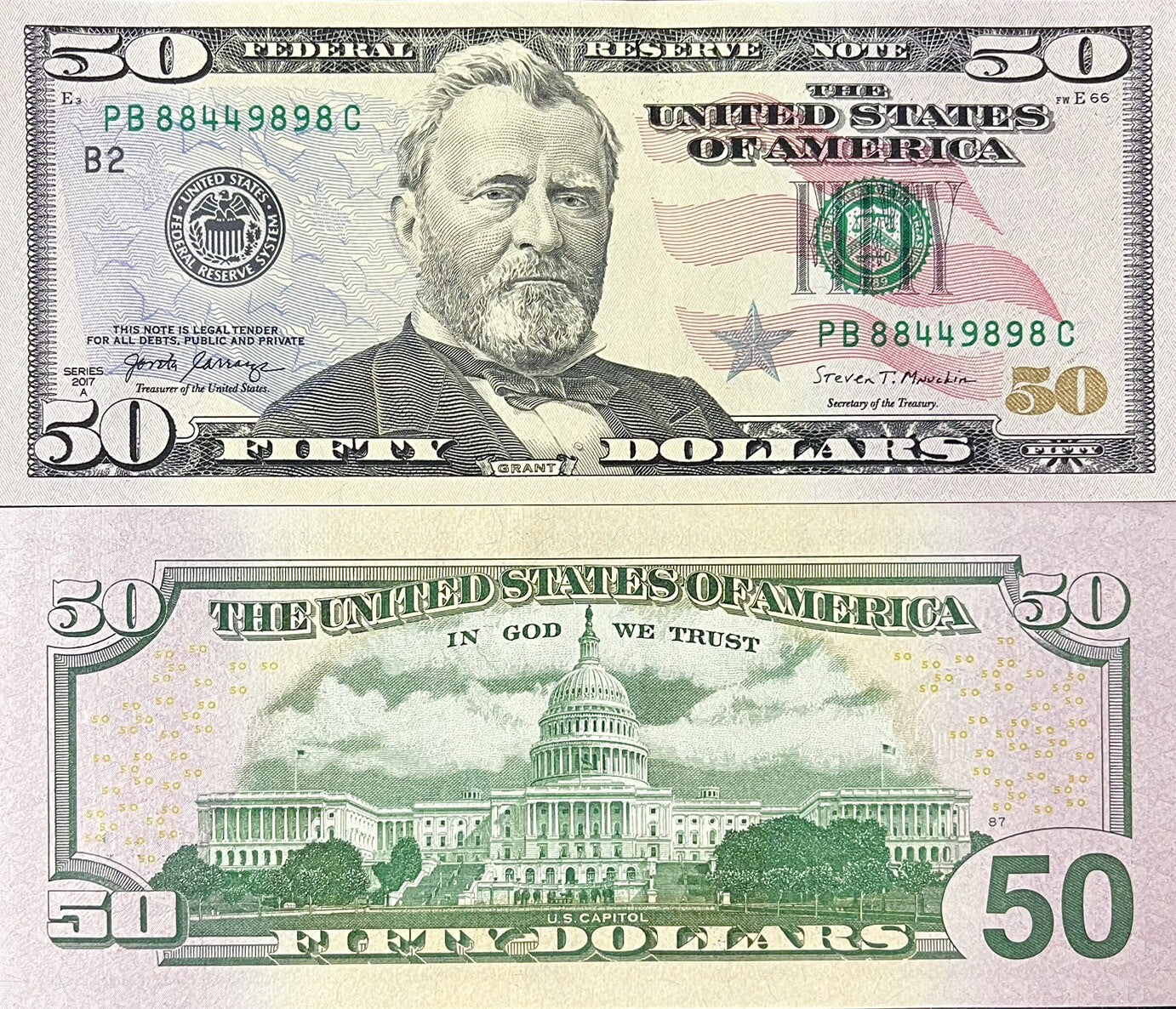 The actual note may have a different prefix and serial number.