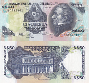 Uruguay 50 Pesos 1989 TDLR P 61A UNC With Yellow Tone