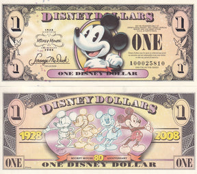 USA Disney 1 Dollar 2008 Mickey 80th Anniversary 1928-2008 A Prefix UNC