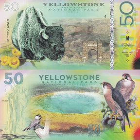 USA Yellowstone National Park 50 Dollars Polymer 2018 Bison Falcon UNC