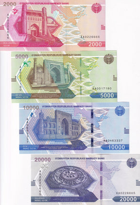 Uzbekistan Set 4 Pcs 2000 5000 10000 20000 Som 2021 P 87 88 89 P 90 UNC