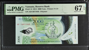 Vanuatu 2000 Vatu 2014 P 14 Polymer Superb Gem UNC PMG 67 EPQ