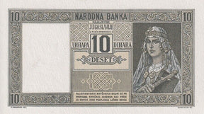 Yugoslavia 10 Dinara 1939 P 35 UNC