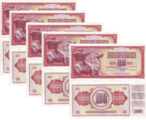 Yugoslavia 100 Dinara 1981 P 90 b ZA REPLACEMENT UNC LOT 5 PCS