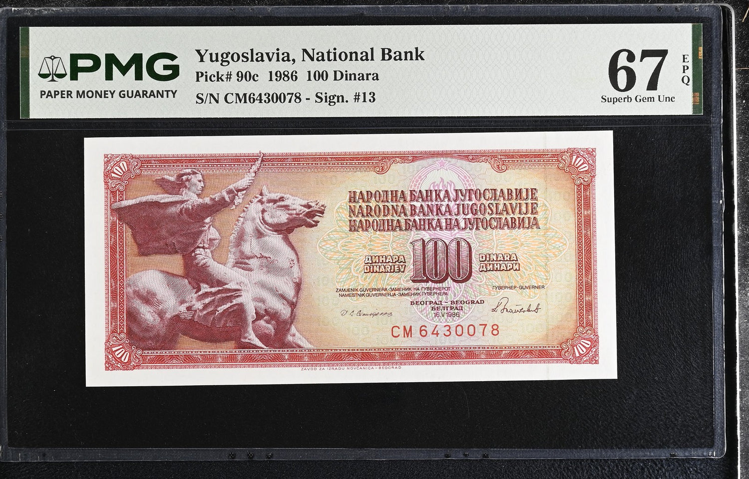 Yugoslavia 100 Dinara 1986 P 90 c Superb Gem UNC PMG 67 EPQ