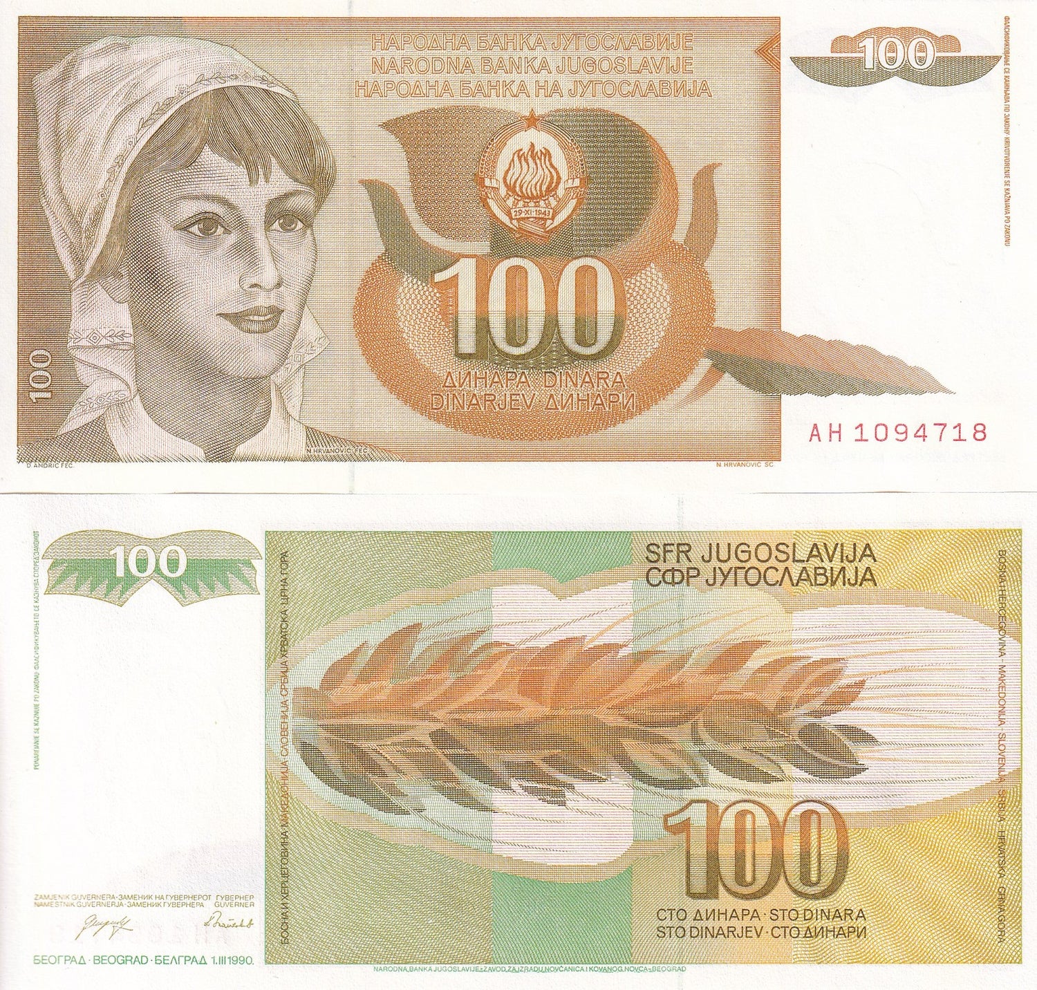 Yugoslavia 100 Dinara 1990 P 105 UNC
