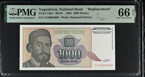 Yugoslavia 1000 Dinara 1994 P 140 a* Replacement GEM UNC PMG 66 EPQ
