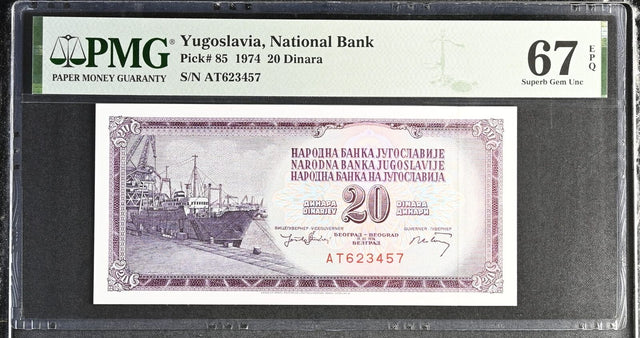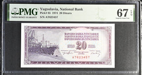Yugoslavia 20 Dinara 1974 P 85 Superb GEM UNC PMG 67 EPQ