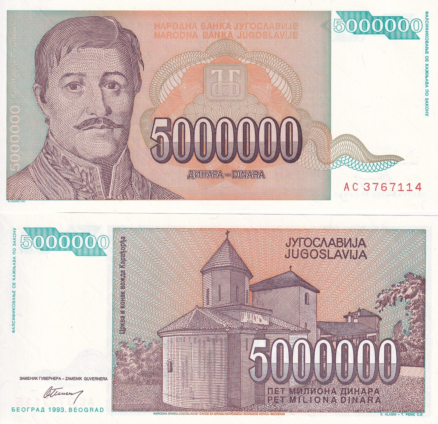 Yugoslavia 5 Million Dinara 1993 P 132 UNC