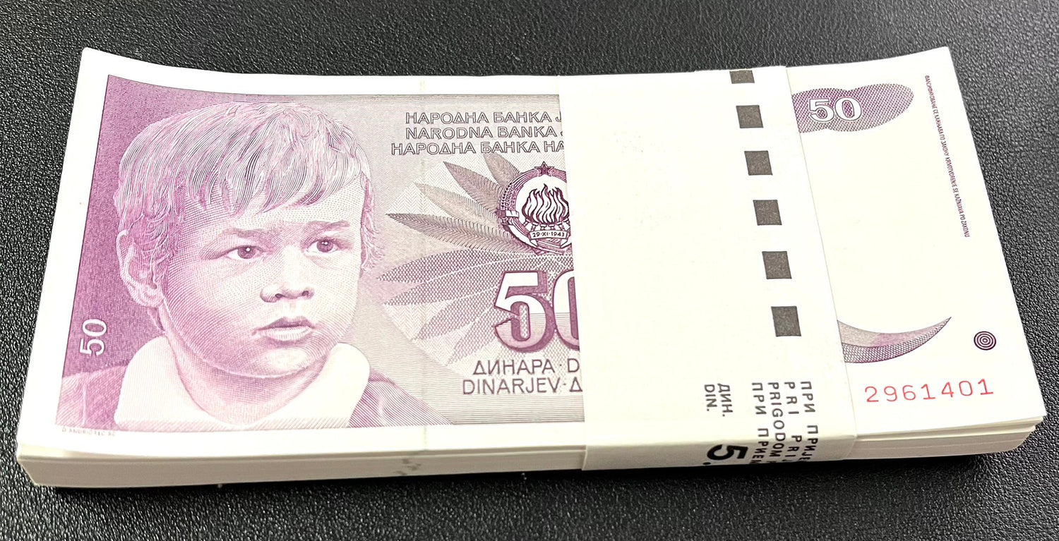 Yugoslavia 50 Dinara 1990 P 104 UNC LOT 100 PCS 1 Bundle