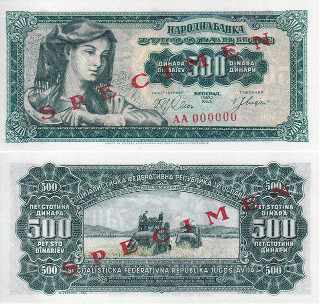 Yugoslavia 500 Dinara 1963 P 74 Specimen UNC