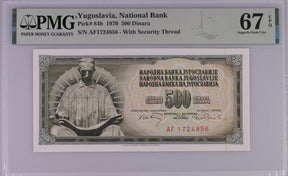 Yugoslavia 500 Dinara 1970 P 84 b Security Thread Superb GEM UNC PMG 67 EPQ