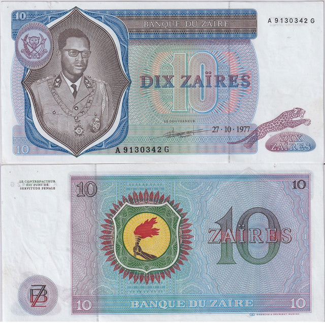 Zaire 10 Zaires 1977 P 23 b AUnc But Tear See Scan