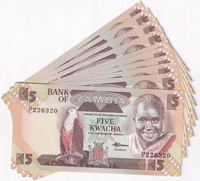 Zambia 5 Kwacha ND 1980-1988 P 25 d UNC LOT 10 PCS