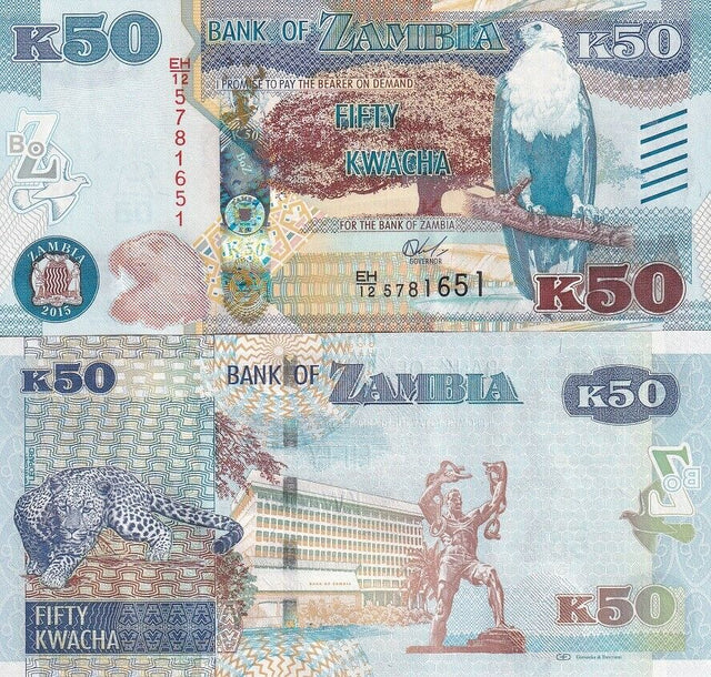 ZAMBIA 50 KWACHA 2015 P 60 UNC
