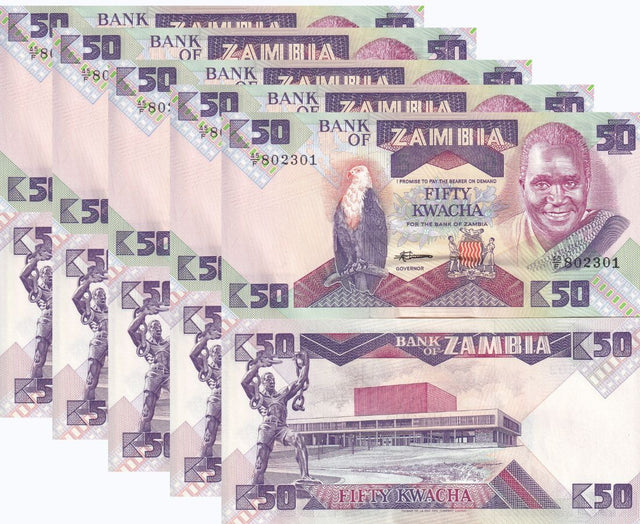 Zambia 50 Kwacha ND 1986 - 1988 P 28 UNC LOT 5 PCS