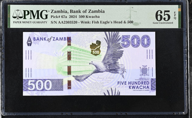 Zambia 500 Kwacha 2024 P 67 a Gem UNC PMG 65 EPQ