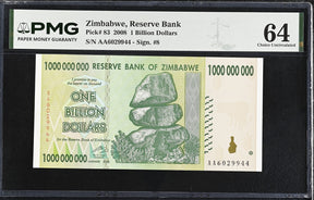 Zimbabwe 1 Billion Dollars 2008 P 83 Choice UNC PMG 64