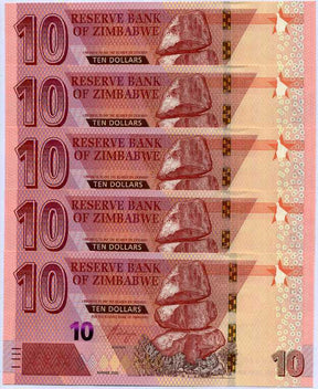 Zimbabwe 10 Dollars 2020 P 103 UNC LOT 5 PCS