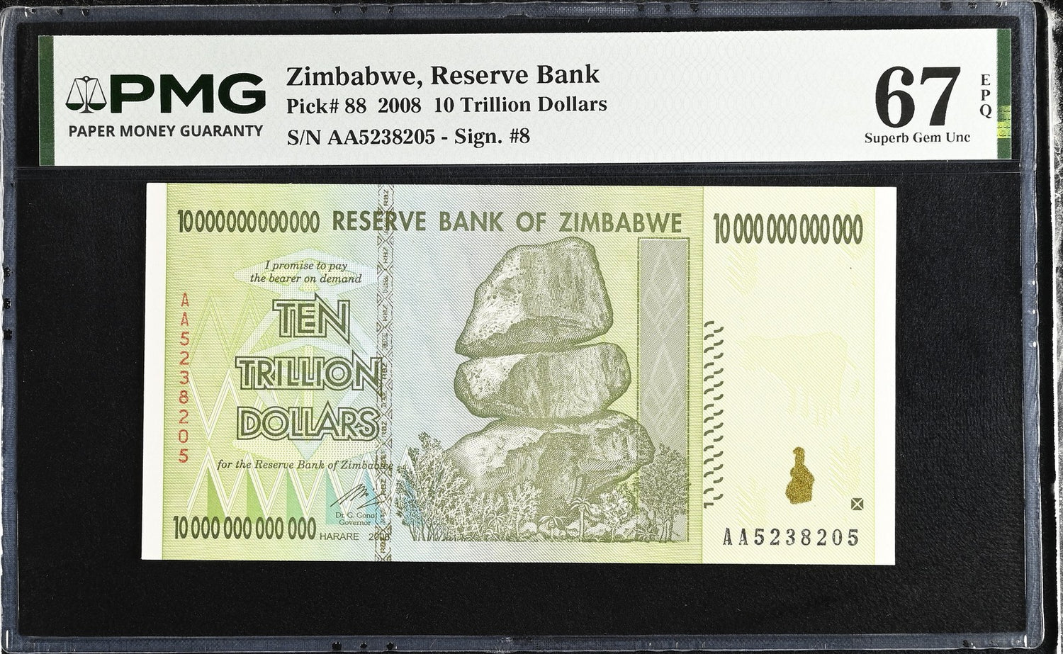 Zimbabwe 10 Trillion Dollars 2008 P 88 Superb Gem UNC PMG 67 EPQ