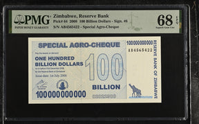 Zimbabwe 100 Billion Dollars 2008 P 64 Superb Gem UNC PMG 68 EPQ TOP POP is backordered and will ship as soon as it is back in stock.
