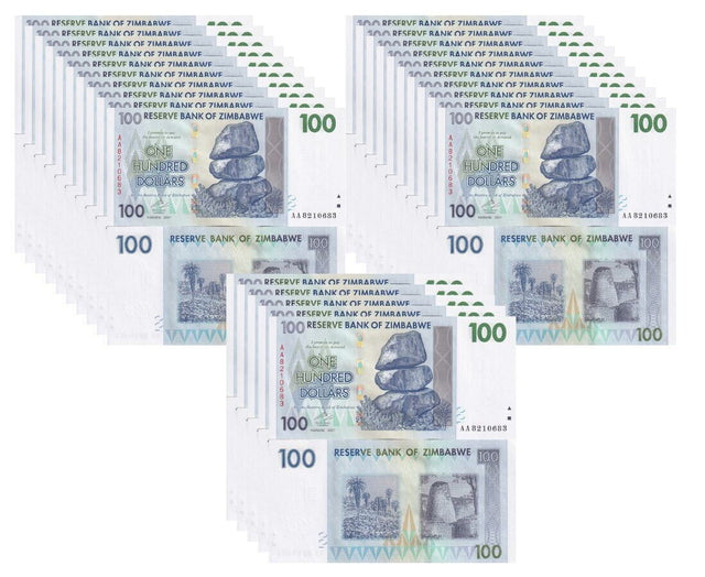 Zimbabwe 100 Dollars 2007 P 69 UNC LOT 25 PCS 1/4 BUNDLE