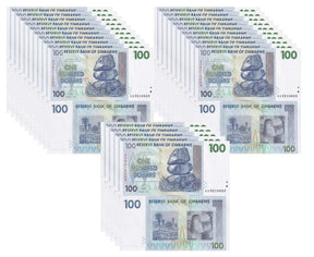 Zimbabwe 100 Dollars 2007 P 69 UNC LOT 25 PCS 1/4 BUNDLE is backordered and will ship as soon as it is back in stock.