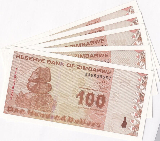 Zimbabwe 100 Dollars 2009 P 97 UNC LOT 5 PCS
