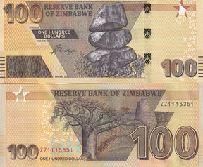 Zimbabwe 100 Dollars 2023 P 106 ZZ Replacement UNC is backordered and will ship as soon as it is back in stock.