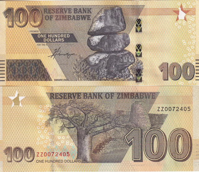 Zimbabwe 100 Dollars 2020 P 106* ZZ PREFIX Replacement UNC is backordered and will ship as soon as it is back in stock.