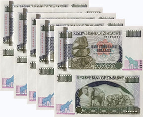 Zimbabwe 1000 Dollars 2003 P 12 b Small Digits UNC LOT 5 PCS is backordered and will ship as soon as it is back in stock.