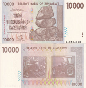 Zimbabwe 10000 Dollars 2008 P 72 UNC is backordered and will ship as soon as it is back in stock.