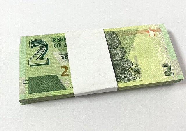 Zimbabwe 2 dollars 2019 P 101 UNC LOT 100 PCS 1 Bundle