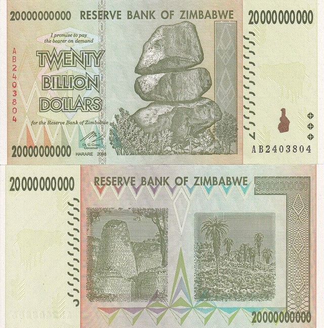 Zimbabwe 20 Billion Dollars 2008 P 86 UNC