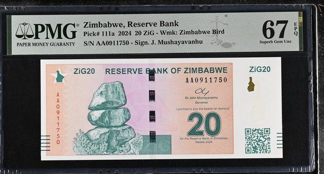 Zimbabwe 20 ZiG 2024 P 111 a Superb Gem UNC PMG 67 EPQ