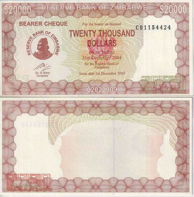 Zimbabwe 20000 Dollars 2003/2004 P 23 UNC