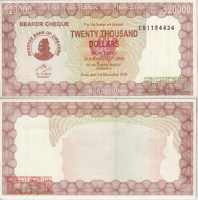 Zimbabwe 20000 Dollars 2003/2004 P 23 UNC is backordered and will ship as soon as it is back in stock.